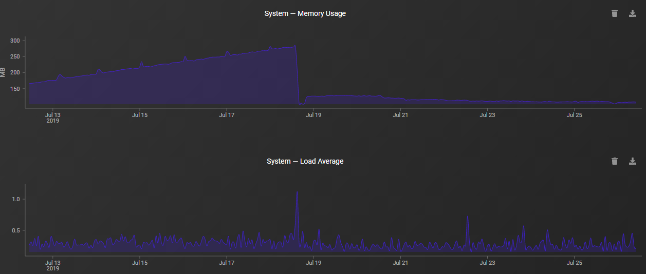 de twee dips zijn van de software updates, laatste is 2.5.1-rc.3 op 4 aug. j.l.