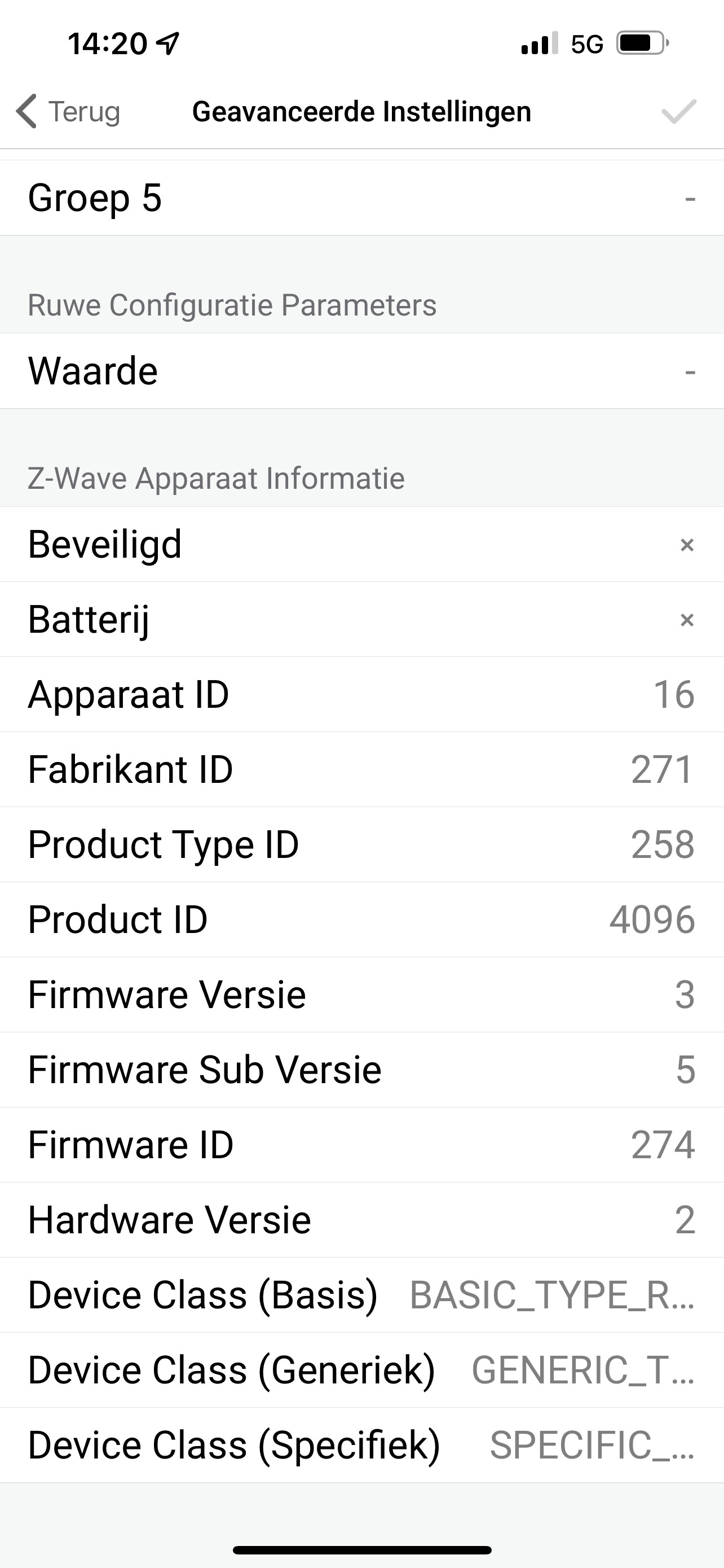 Ik heb een screenshot gemaakt van alle gegevens.