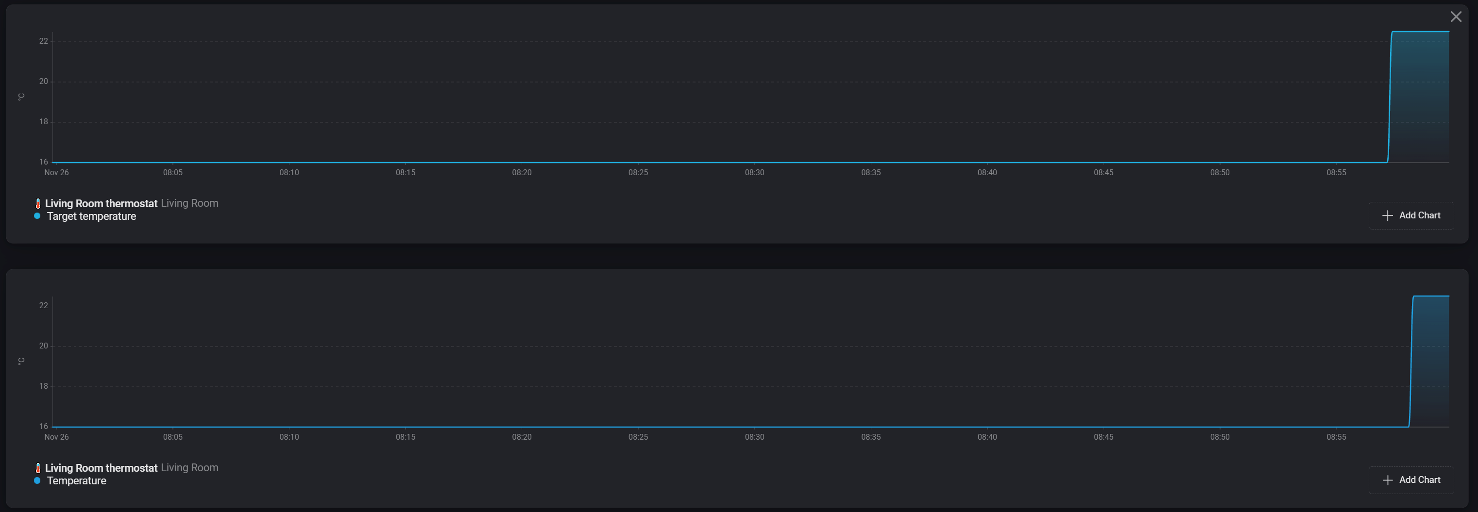 It seems Homey is displaying in insights the measured temperature at a thermostat as being identical to the set temperature, which obviously cannot be correct, since it takes time for a device to heat and cool what’s around it. For example this is a HeatIt Thermostat for underfloor heating