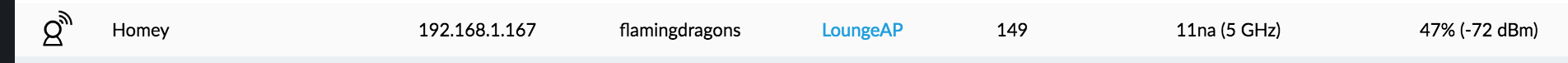 Is there an issue with the Homey WiFi ? its connected on the 5Ghz band, my WiFi is Unifi Pro’s.