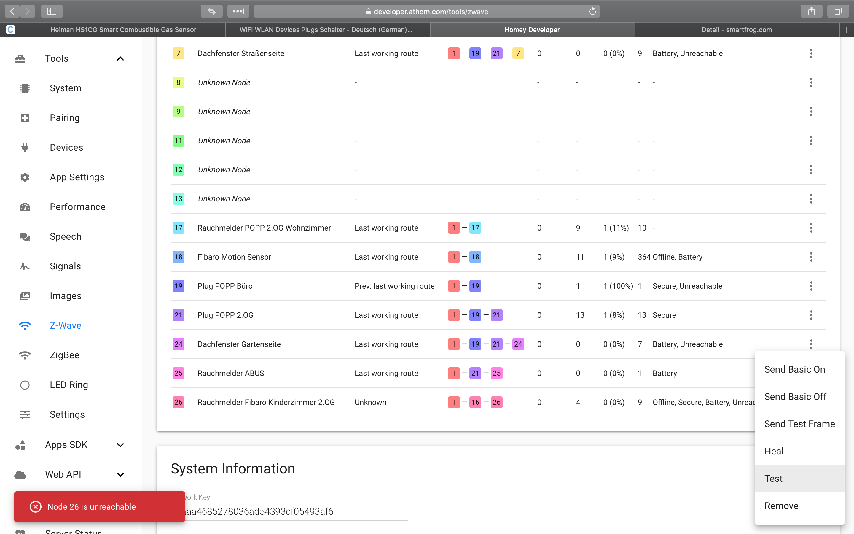 Ich sehe, dass du auch viele Unknown Node Geräte hast. Das Löschen dieser Geräteleichen soll bald möglich sein. Athom behauptet zwar, dass das keinen Einfluss auf das System hat, aber ich bin da anderer Meinung.