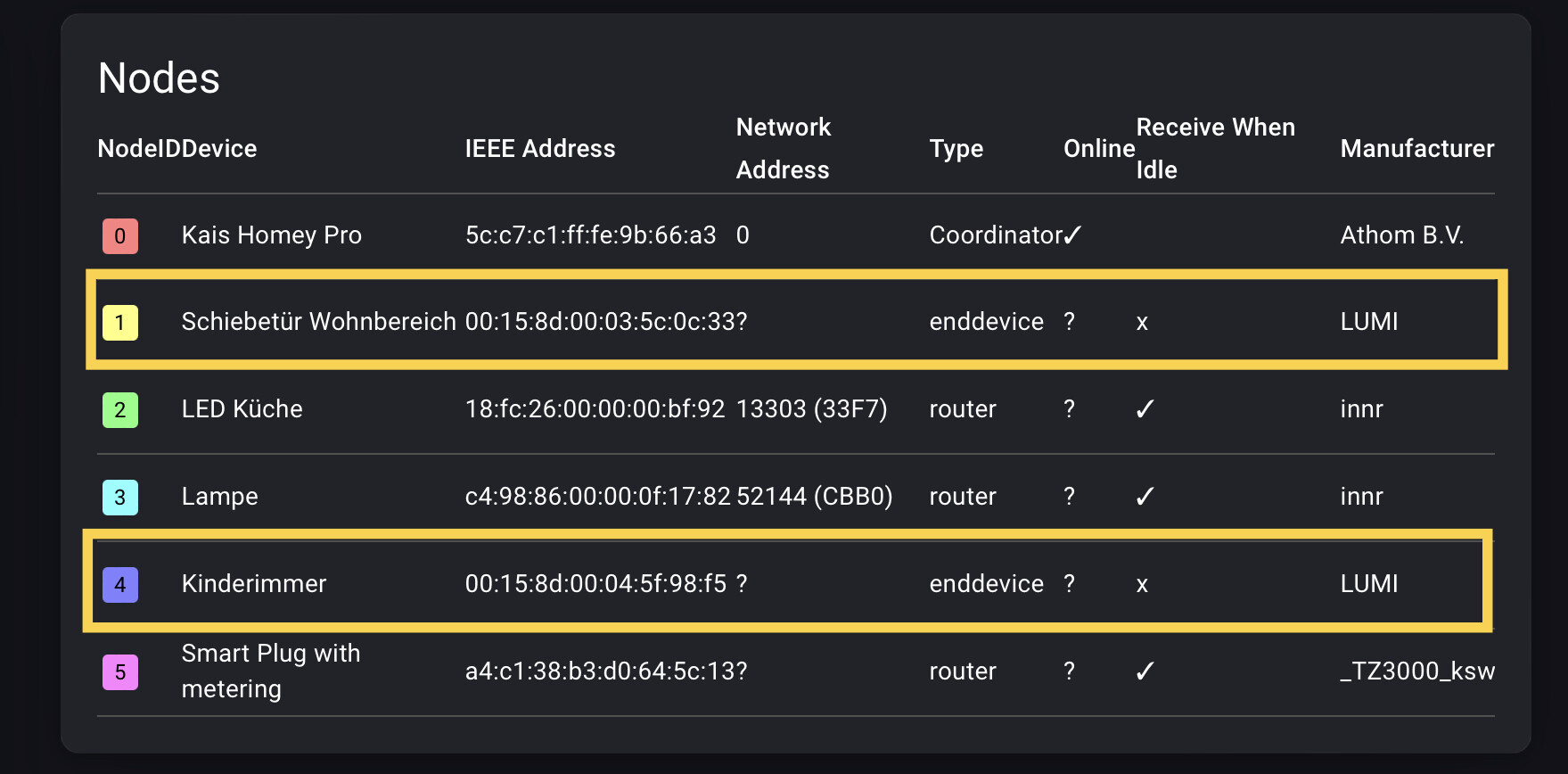 I mean like for several devices I had to repeat that, so in total like 100x (I mean it as example not to give up) … BUT - I have almost zero success with lumi.sensor_motion - out of 6 sensor I’m able to keep alive only one ;-( … but wait a minute, are we speaking about lumi.sensor_magnet ? Because seems I was wrong, seems I got working like that only lumi.sensor_magnet.aq2, because when I’m checking now, only lumi.sensor_magnet.aq2 have the network address and are working fine. Can you guys sent report to Athom please with screenshot from developers interface ?