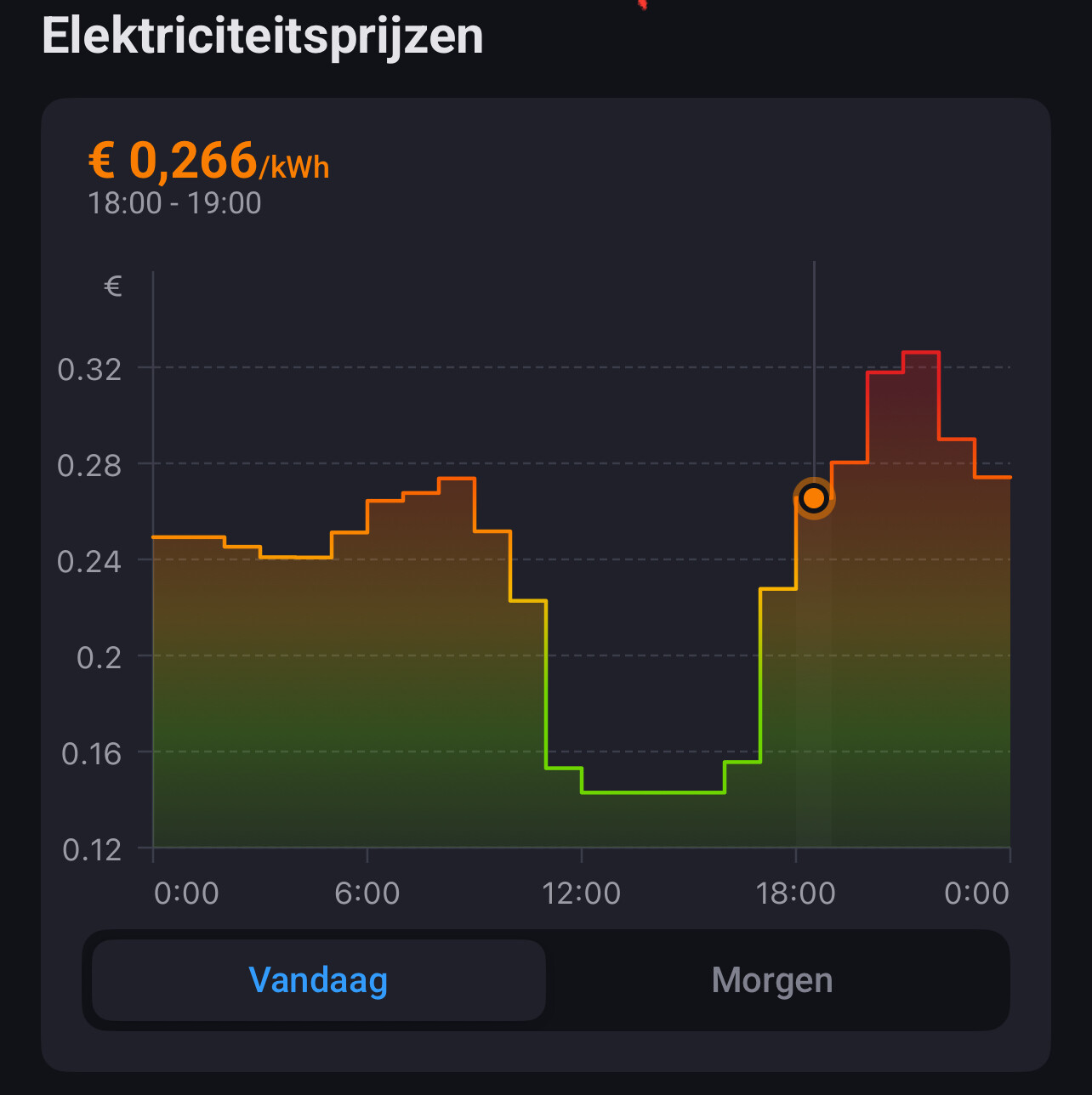 Mijn invulling 0,1181 kom goed overeen. Dan heb ik mijn bedrag goed staan in de app. Alleen wanneer ik dan kijk in de energy app dan rond de Homey app af naar boven, dat is wel vreemd!
