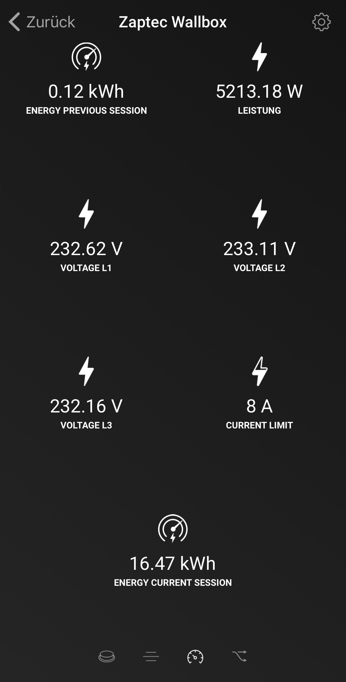 The charging status seems to work as expected, even the “charging finished” status works the same as the Zaptec App works. No findings here so far.