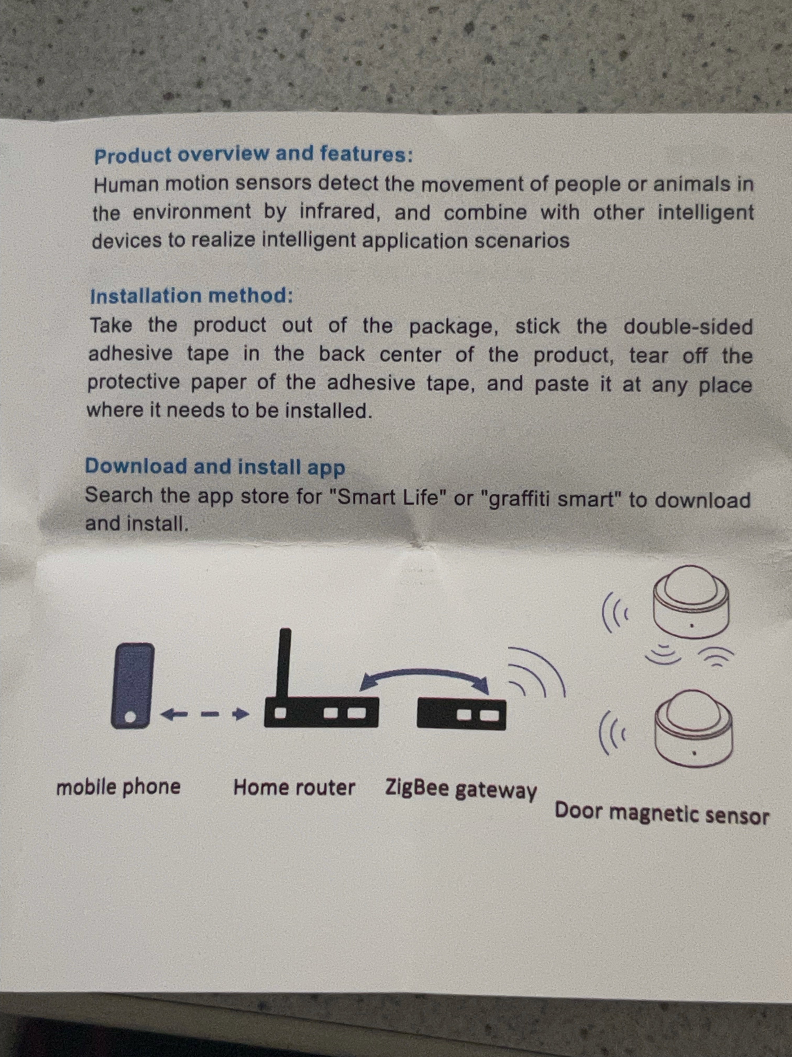 Ob Zigbee oder Wifi, ich habe keine App gefunden die diese Motion Sensoren unterstützt.